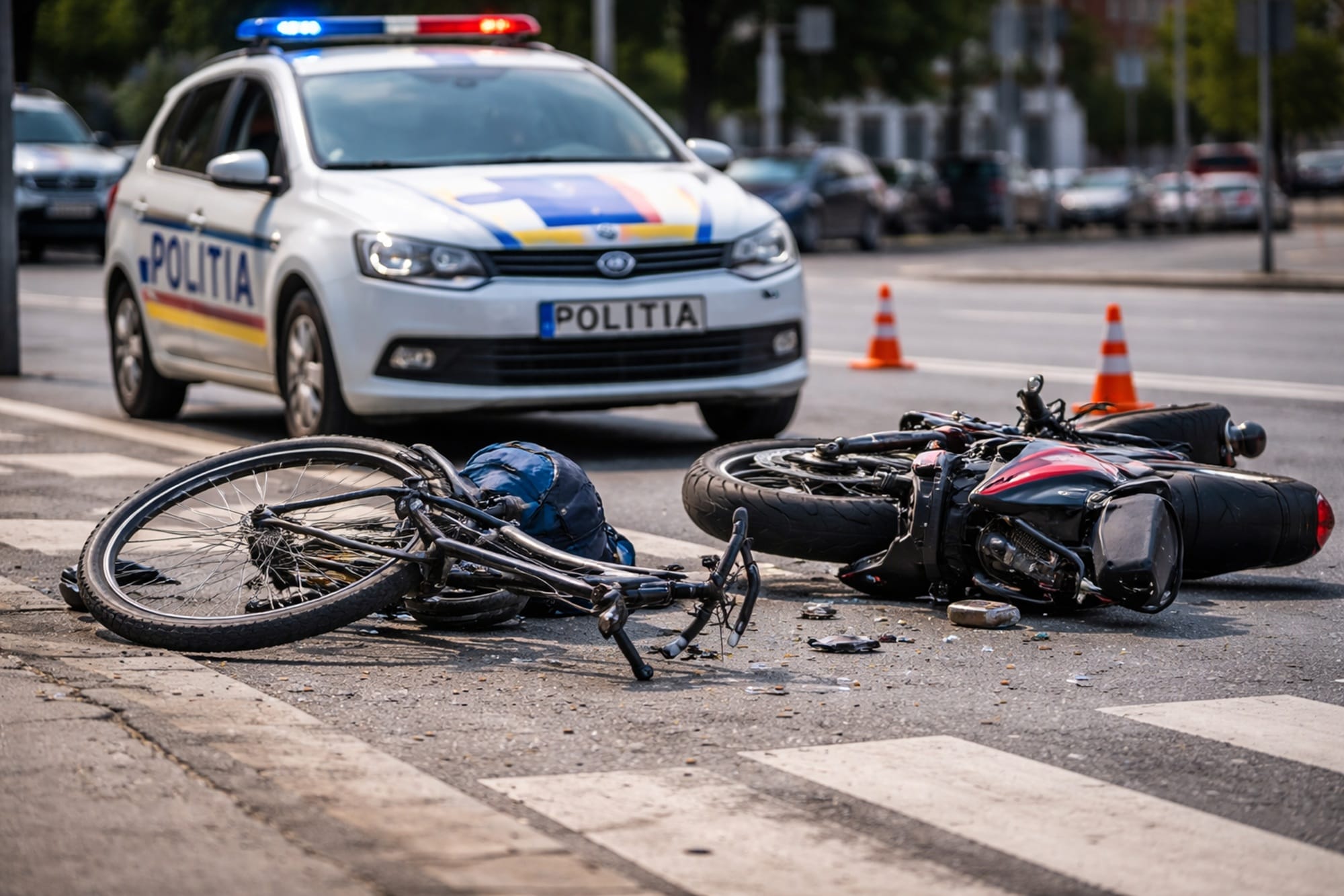 Accident! Biciclist și motociclist răniți după o traversare pe roșu
