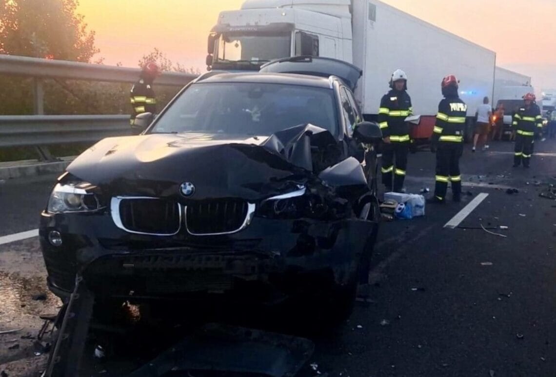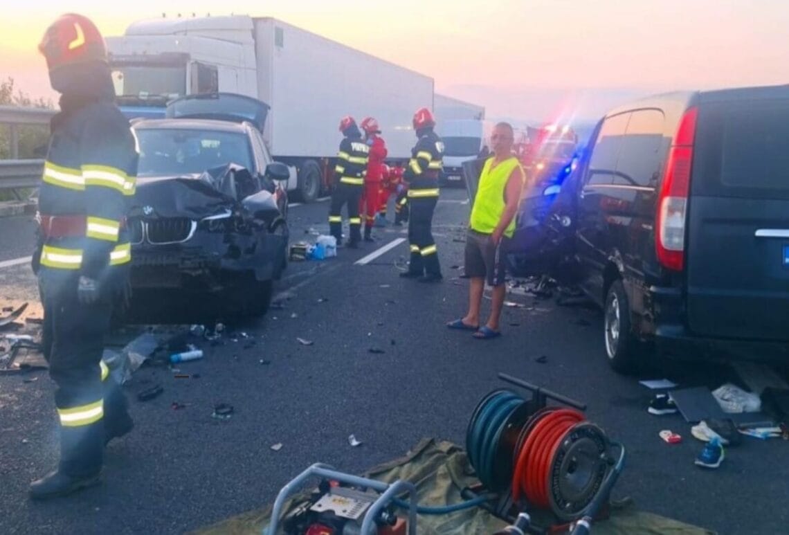Accident rutier foarte grav. Multe victime printre care și copii de 8 și 14 ani. Trei mașini s-au ciocnit de un TIR. Trei autoturisme şi un autotren au fost implicate luni dimineaţă într-un accident produs pe autostrada A1, sens de mers Orăştie – Simeria. În urma acestuia rezultând rănirea a şase persoane, printre care şi doi minori, în vârstă de 8, respectiv 14 ani.