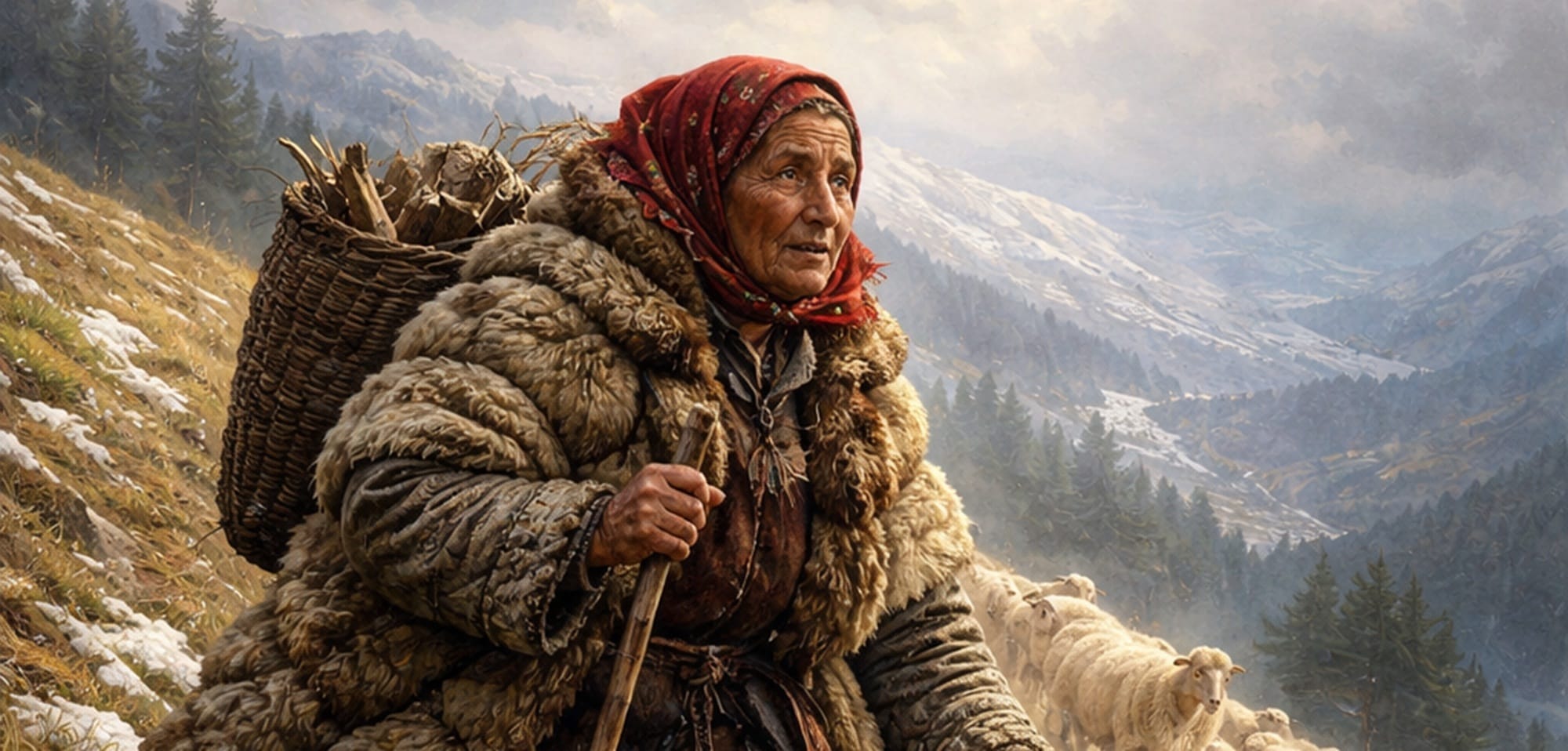 Convinsă că vremea s-a îmblânzit, și-a luat oile și a urcat pe munte, îmbrăcată cu nouă cojoace. Pe măsură ce soarele încălzea aerul, a renunțat la ele, unul câte unul. Însă frigul s-a întors brusc, iar legenda spune că a fost înghețată și transformată în stâncă, drept pedeapsă pentru asprimea sa.