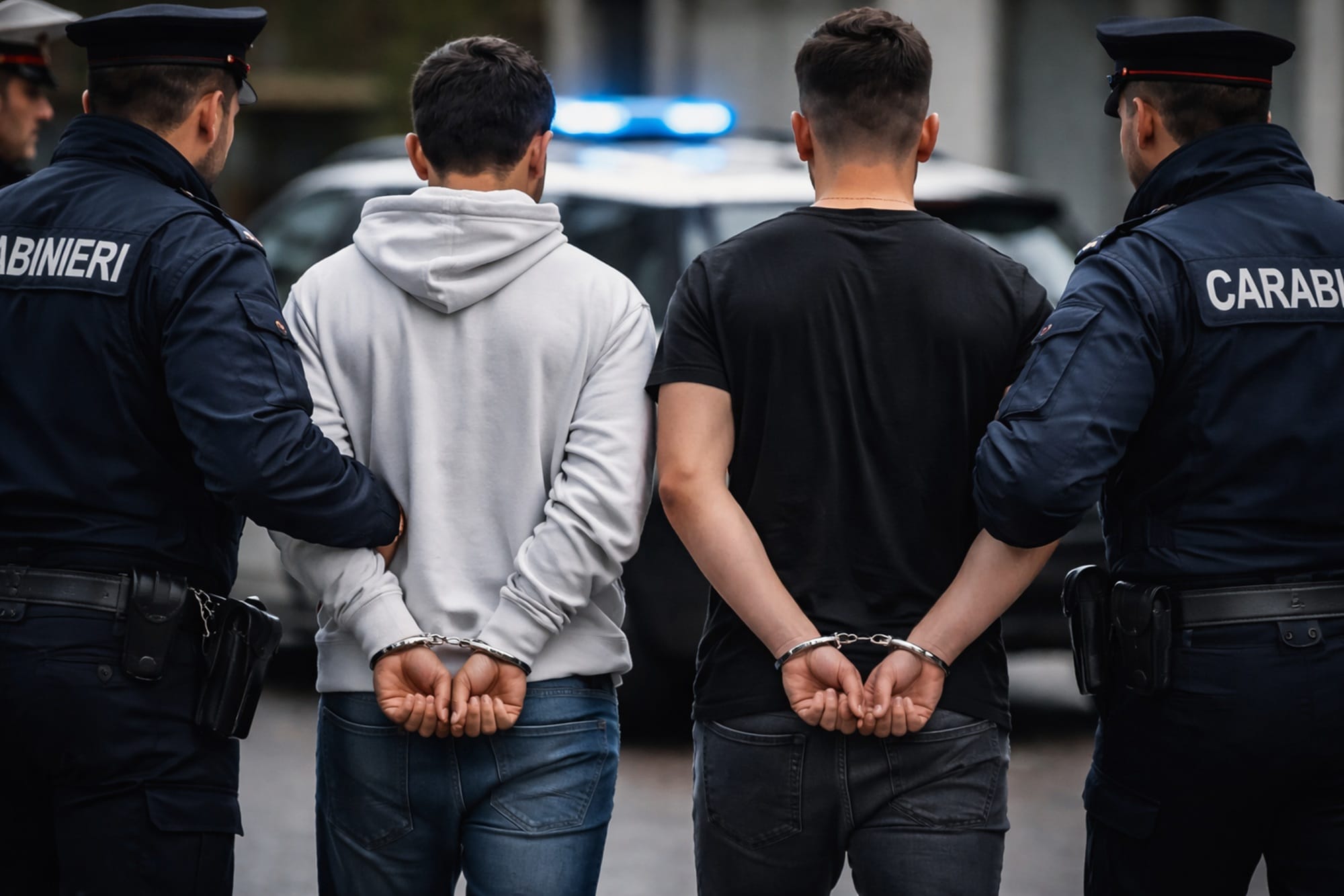 În urma intervenției forțelor de ordine, trei persoane au fost reținute: doi tineri români, în vârstă de 19 și 23 de ani, precum și un minor italian de 17 ani.