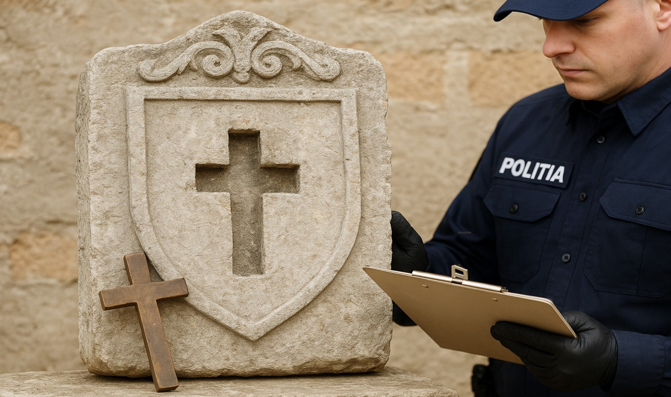 Crucea istoriei, furată! Bărbat suspectat că a smuls simbolul de pe o stemă de piatră. Un bărbat de 54 de ani din judeţul Harghita este suspectat că a furat o cruce din bronz aplicată pe coroana unei steme istorice din calcar, din Odorheiu Secuiesc. Vineri, la locuinţa suspectului a fost făcută o percheziţie, dar obiectul nu a fost găsit.