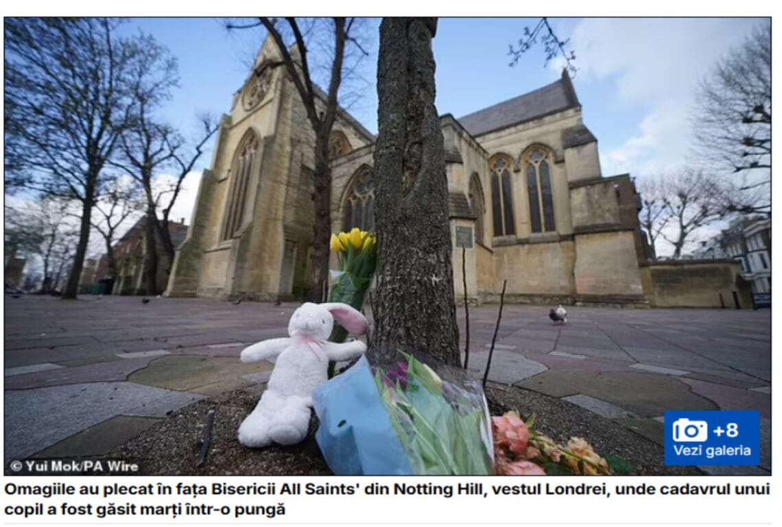 Ofițerii de la Poliția Met au fost chemați marțea trecută la ora 12:46 la Biserica All Saints de pe Talbot Road din Notting Hill, după ce cadavrul băiețelului a fost găsit.