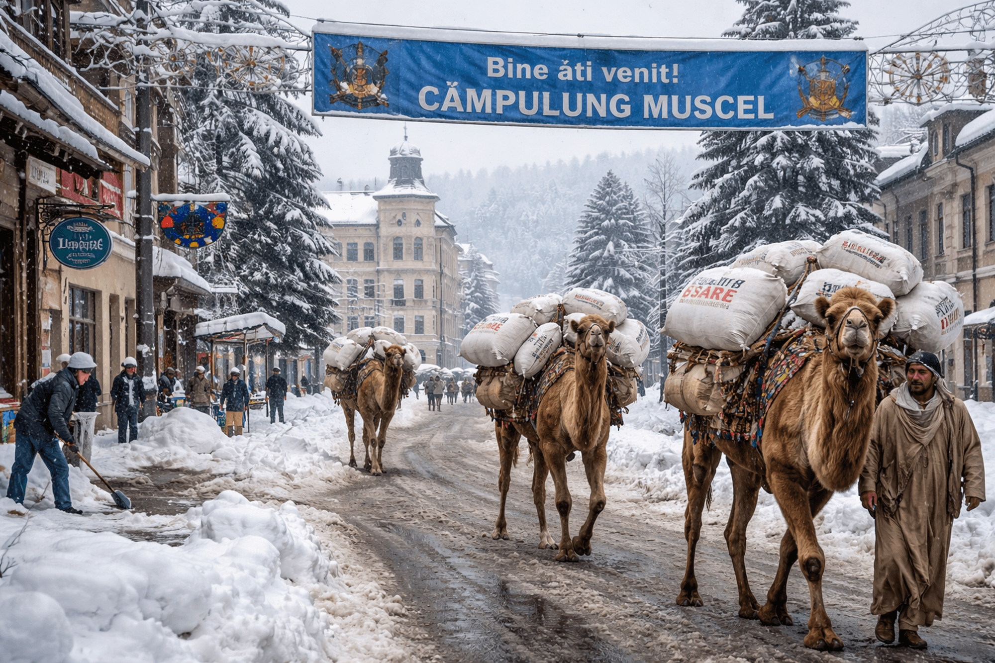 Iarnă africană la Câmpulung: sare din Egipt, gheață din belșug și deszăpezire… imaginară. La Câmpulung Muscel, iarna aceasta nu a fost doar rece, ci și profund creativă.