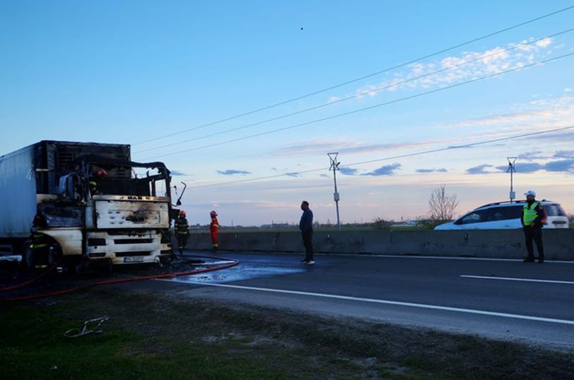 Traficul urmează să fie reluat în condiții normale după finalizarea intervenției pompierilor și îndepărtarea autotrenului avariat de pe carosabil.
