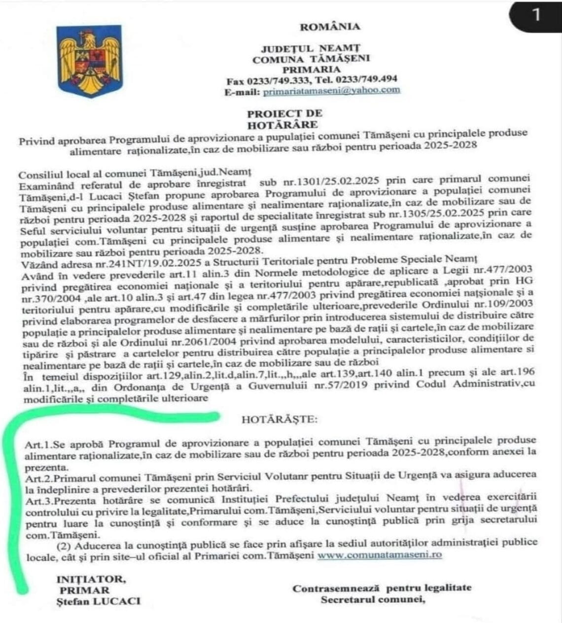 „Ținem să precizăm că solicitarea la care face referire postarea care se răspândește în mediul on-line nu înseamnă în niciun fel intrarea țării în vreun conflict, ci este doar o procedură periodică inițiată de Administrația Națională a Rezervelor de Stat și Probleme Speciale (ANRPS) și autoritățile locale competente.