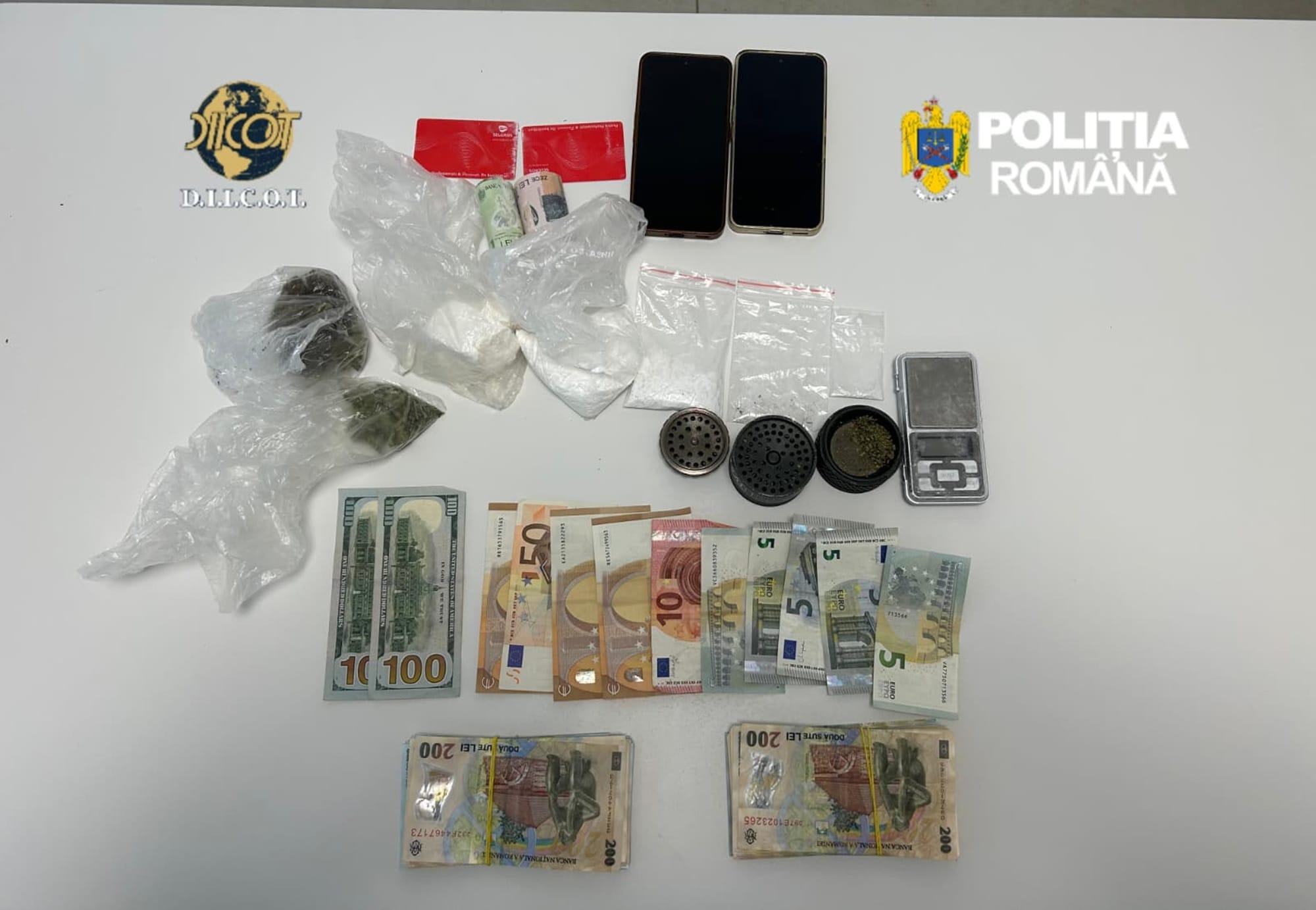 Rețea de droguri destructurată! Cocaină, canabis și substanțe psihoactive, descoperite la percheziții