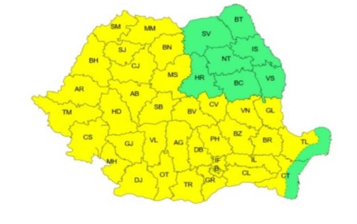 De asemenea, meteorologii au prelungit codul galben de caniculă. În intervalul 25 iunie, ora 10:00 – 26 iunie, ora 10:00, valul de căldură se va manifesta în majoritatea zonelor. Va fi caniculă și disconfort termic ridicat în Banat, Crișana, Maramureș, Oltenia, Muntenia, sudul Moldovei, Dobrogea continentală și în cea mai mare parte a Transilvaniei, iar indicele temperatură-umezeală (ITU) va depăși pragul critic de 80 de unități. Temperaturile maxime vor fi cuprinse între 34 și 38 de grade, iar cele minime între 17 și 24 de grade, caracterizând o noapte tropicală în sudul și vestul țării.