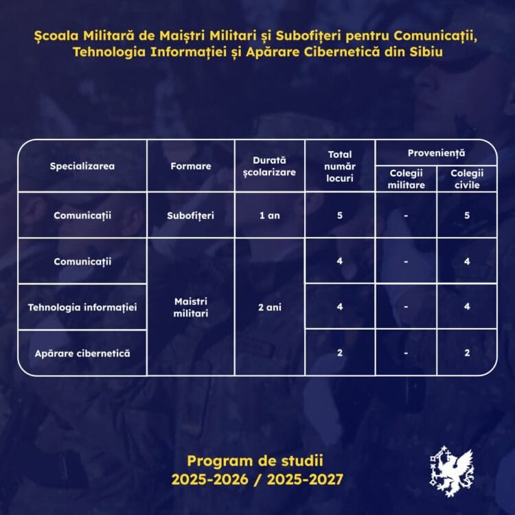 – Școala Militară de Maiștri Militari și Subofițeri pentru Comunicații, Tehnologia Informației și Apărare Cibernetică din Sibiu;