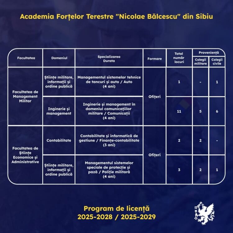 – Academia Forțelor Terestre „Nicolae Bălcescu” din Sibiu;