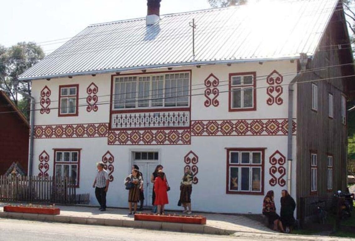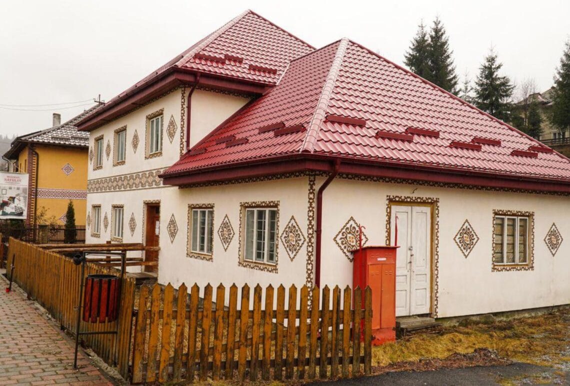 Fiecare casă este împodobită cu motive tradiționale, inspirate din cusăturile și broderiile de pe costumele populare din Bucovina.