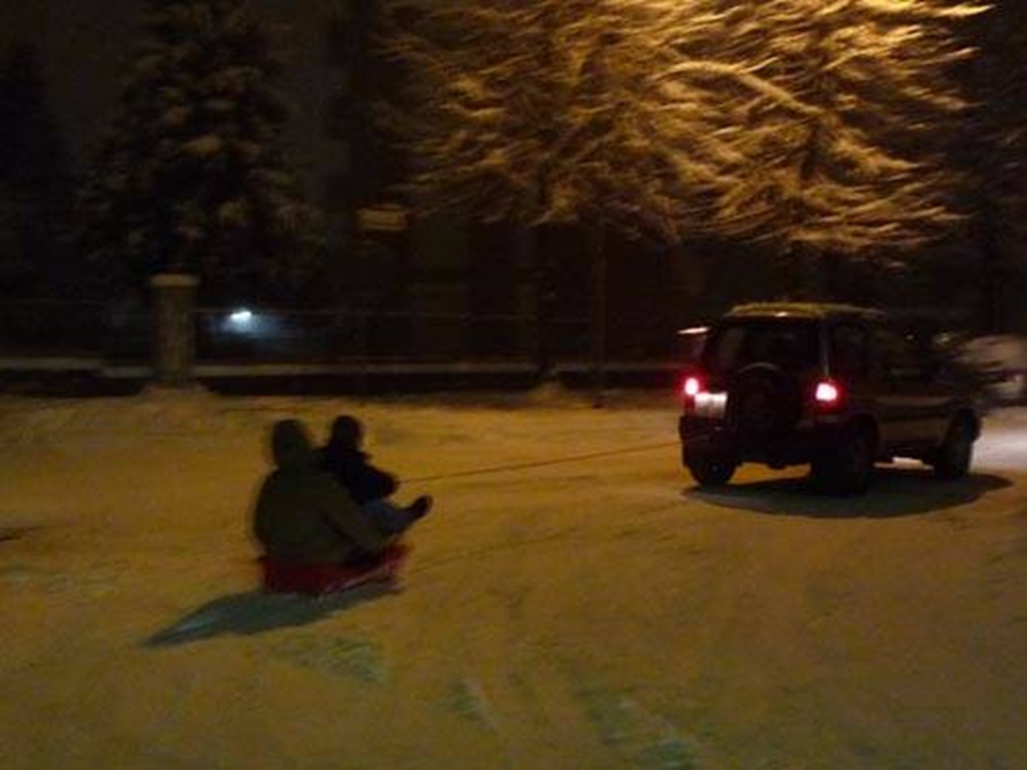 Potrivit primelor verificări efectuate de polițiști, autoturismul era condus de un tânăr de 21 de ani, din comuna Voineasa, care tracta sania pe care se aflau cei doi tineri.