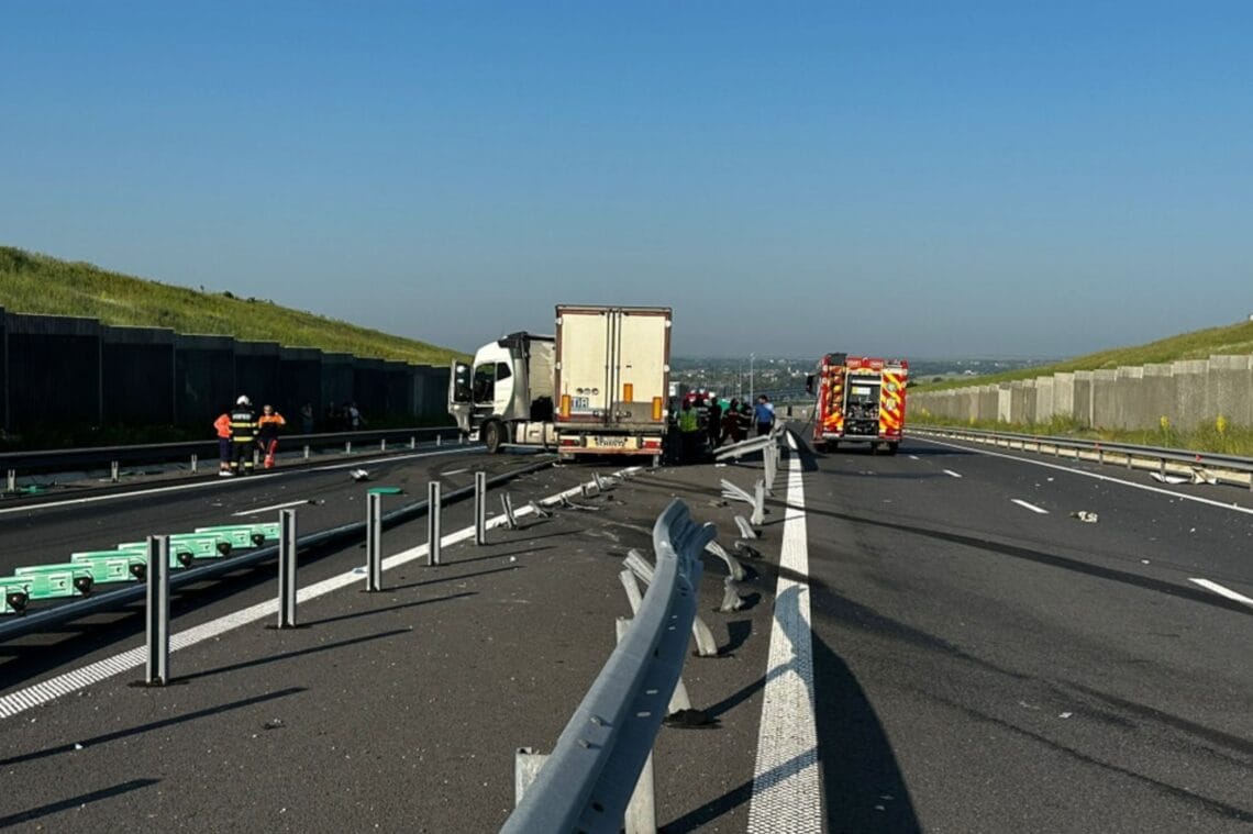 Bărbat: „Ei cred că au avut o scurgere de ulei, că sunt câteva picături care vin de pe autostradă și o baltă de ulei. După ei, cred că erau jos, și șoferul de la tir ori o fi fost adormit și nu a văzut.”